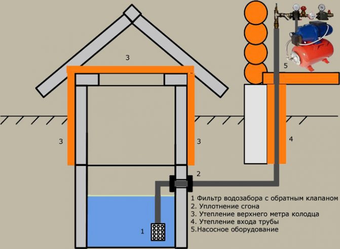 La pompe, le clapet anti-retour, le robinet de vidange sont situés à l'intérieur du puits. Le reste de l'équipement est installé dans une pièce, un sous-sol ou un sous-sol. Si la zone de la maison ne le permet pas, une fosse doit être organisée près du puits. Il est isolé s'il est prévu d'utiliser l'approvisionnement en eau en hiver.