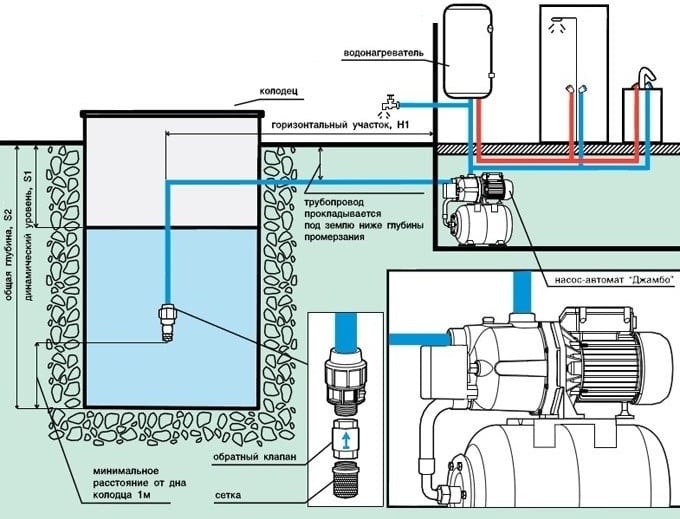 Aujourd'hui, deux schémas d'alimentation en eau d'une maison privée à partir d'un puits sont utilisés: