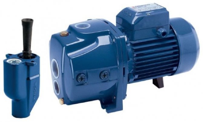 Pour élever l'eau d'une profondeur de 8 à 30 m, une pompe de surface aura besoin d'un éjecteur à distance. Il est placé à l'intérieur du puits. 2 tuyaux sont amenés à l'éjecteur - le long du premier, l'eau monte, le long de la deuxième partie du flux retourne à l'appareil pour créer une chute de pression.