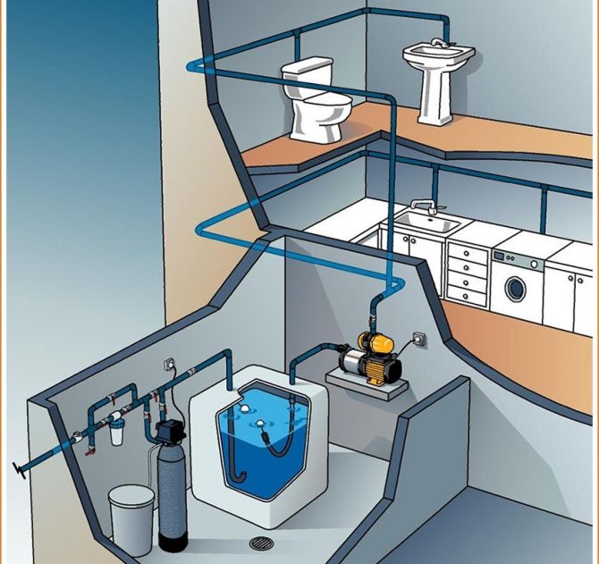 La première option implique l'installation d'un réservoir spécial et d'une pompe qui pompe l'eau de la source au système d'alimentation en eau. Dans le second cas, une station de pompage avec un réservoir d'accumulateur hydraulique et un système d'automatisation est utilisée.