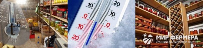 La température optimale dans la cave est considérée comme nulle, si l'exigence envers le moins est violée, les produits peuvent geler, ce qui affectera à la fois son intégrité et son goût. Si la température est dépassée, en raison de l'évaporation de l'humidité des légumes et des fruits, l'humidité peut être augmentée, ce qui provoquera la croissance de bactéries.