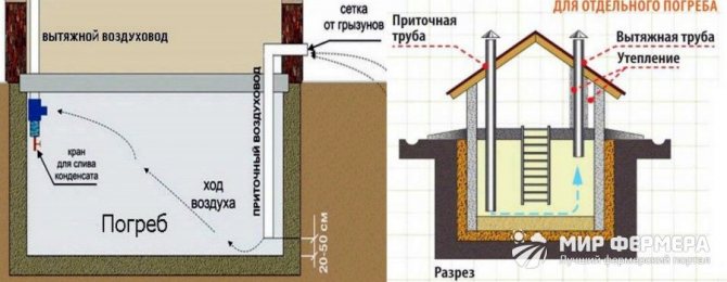 air frais. Un tel indicateur permet non seulement d'éliminer l'humidité dans la cave, mais également de normaliser partiellement le régime de température.