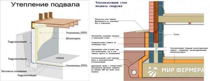 Il est nécessaire d'isoler la partie des murs qui se trouve au niveau du gel du sol. Pour ce faire, il est nécessaire de coller des feuilles de polystyrène expansé sur les murs en tant que chauffage. Pour les réparer, vous pouvez utiliser de la mousse ou de la colle spéciale. Une telle isolation vous permettra d'éviter les températures négatives dans la cave, de protéger les légumes du gel.
