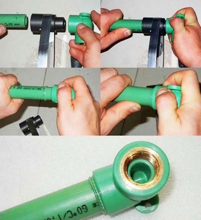 Ici, vous avez besoin d'un fer à souder spécial pour les tuyaux en polypropylène.