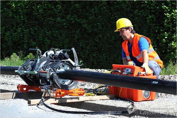 Il convient de noter que la question (à la fois en plastique et en PEHD) peut être assimilée à une question plutôt que de le faire, car le processus lui-même est très simple. Toutes les sections sont montées à l'aide de raccords et connectées à la canalisation par soudage, le plus important est donc le choix d'un appareil approprié. Mais regardons l'ordre général de la méthode d'épissage.