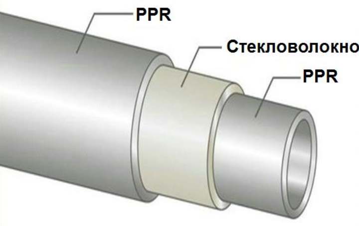La couche de renforcement la plus populaire actuellement est la fibre de verre. En choisissant du polypropylène avec de la fibre de verre, vous verrez que l'intérieur et l'extérieur d'un tel tuyau sont en polypropylène et la couche centrale est en fibre de verre. Cependant, les trois couches forment un seul tout, puisque la couche centrale de fibre de verre est faite à base de polypropylène mélangé avec des fibres de verre. L'allongement linéaire de ces tuyaux est légèrement plus grand que lorsqu'ils sont renforcés avec une feuille d'aluminium et est d'environ 2,5 mm avec une longueur de tuyau de 1 m.