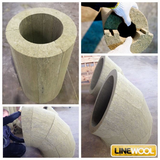 Une attention particulière est accordée à l'installation de laine de basalte cylindrique sur les coudes courbes des systèmes de canalisations. Pour cela, les cylindres sont divisés en plusieurs parties constitutives. Les tuyaux fortement incurvés sont isolés avec des cylindres divisés en deux par un angle de 45 °. Des pièces séparées sont connectées à angle droit pour abouter le long de la ligne de coupe.