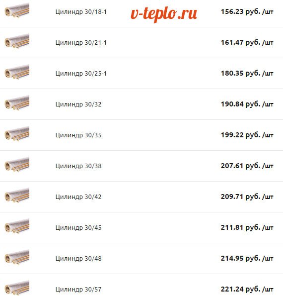 Noter! Le prix des cylindres en laine minérale dépend du diamètre et du fabricant spécifique, mais il est en moyenne de 83 à 148 roubles.