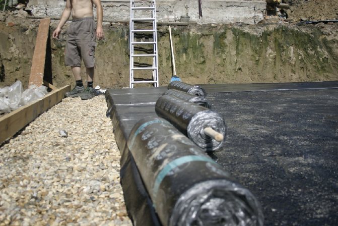 Pour protéger le bois de l'humidité, une couche d'imperméabilisation est montée sur le dessus de la chape. Il peut s'agir de mousse de polyéthylène, de pellicule plastique ou de mastic liquide. L'imperméabilisation roulée est déployée sur toute la base avec de petites tolérances sur les murs. Dans ce cas, les pièces adjacentes doivent se chevaucher. Il est recommandé de coller les joints avec du ruban de construction.