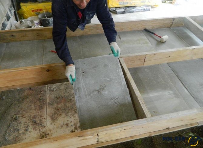 Lors de la disposition de la base sur les dalles de sol, le gâteau sera légèrement différent. En règle générale, il s'agit du plancher du grenier: