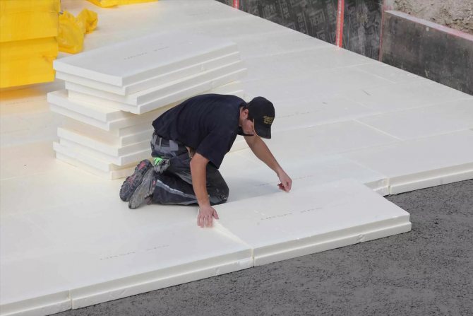 Contrairement au sol froid, des couches chauffantes sont disposées ici sous le coussin de sable. Pour cela, après avoir enlevé la couche fertile, le site sous le futur bâtiment est percuté. Ensuite, la première couche d'isolation thermique est posée. Le matériau utilisé peut être les sacs d'emballage laissés par le mélange de ciment. Ils doivent être posés en 2 couches et recouverts d'une couche de pierre concassée de 8 à 10 cm d'épaisseur.La pierre concassée est percutée et versée avec du lait de chaux.