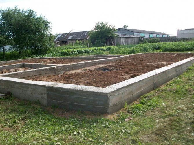 La troisième option prévoit l'installation d'une dalle de béton monolithique ou la pose de bûches de bois dans les intervalles entre les murs porteurs supportés sur un sol en vrac.