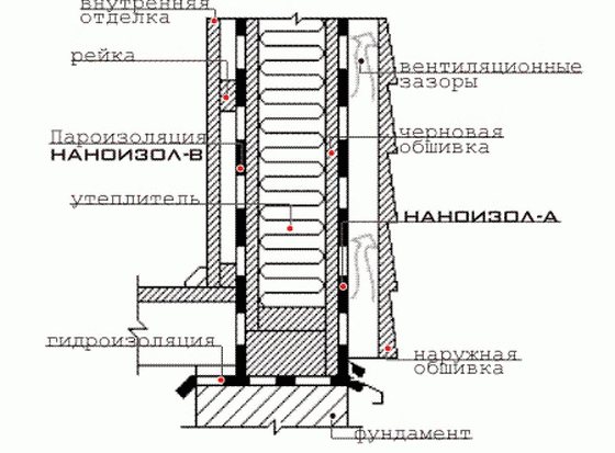- 2. Pour les bâtiments avec des structures murales multicouches. La stratification implique la présence obligatoire d'une protection contre l'évaporation et l'humidité. Cela est vrai pour les maisons à ossature.
