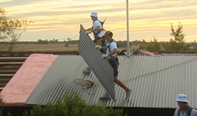 Des tôles profilées sont fixées à la caisse. Avec un pas de 35 centimètres, il y a une garantie que le vent ne "soulèvera" pas les tôles profilées.