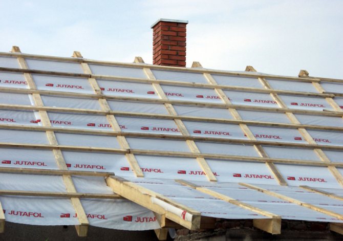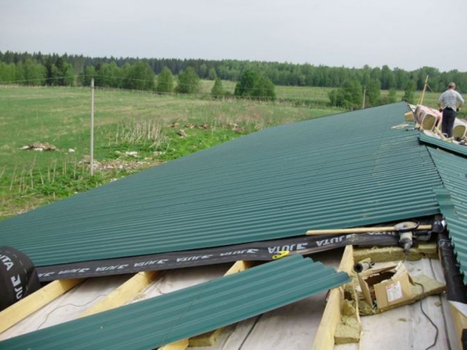 S'il est décidé d'isoler le toit en carton ondulé avec de la laine douce, sujette à l'humidité, vous ne pouvez pas vous passer de la pose d'un film pare-vapeur. Il est monté sur des lattes de finition de plafond, sous isolation thermique.