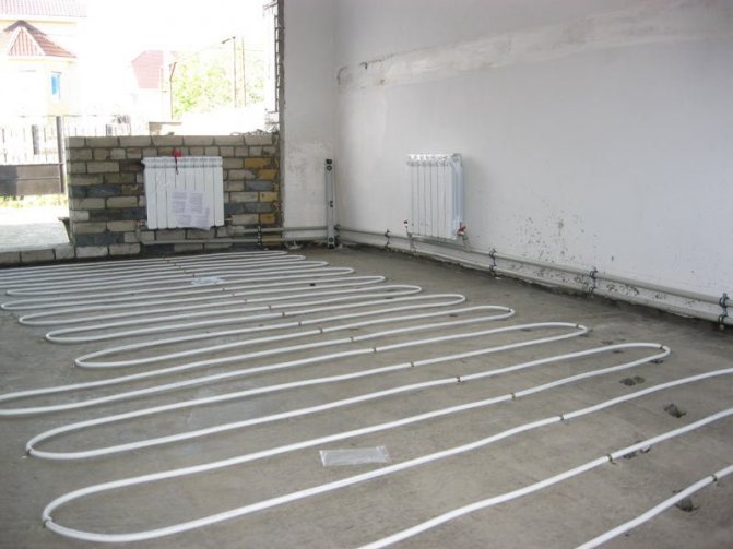 Les tuyaux sont placés en parallèle et montés des murs vers le centre. Au milieu de la pièce, la ligne d'alimentation se termine par une boucle qui se transforme en un circuit de retour, qui, au contraire, va du centre vers le collecteur.