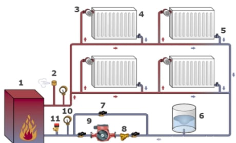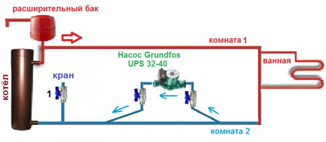 Les propriétaires de ménages privés sont souvent confrontés à une situation similaire: dans la partie la plus éloignée de la structure de chauffage, les radiateurs sont beaucoup plus froids qu'au point de départ. Les experts considèrent l'installation d'une pompe de circulation comme la meilleure solution dans ce cas, comme on le voit sur la photo. Le fait est que dans les maisons de petite taille, les systèmes de chauffage avec circulation naturelle des liquides de refroidissement sont assez efficaces, mais même ici, cela ne fait pas de mal de penser à acheter une pompe, car si vous configurez correctement le fonctionnement de cet appareil, les coûts de chauffage seront réduit.