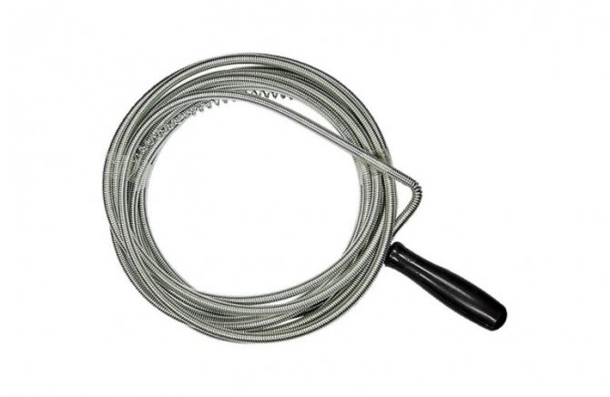 Corde de plomberie flexible (également appelé arbre flexible) - sa base est une tige métallique sur laquelle une spirale métallique est enroulée, parfois en plusieurs couches. Une poignée est attachée à l'une des extrémités, qui, lors de la suppression du blocage, est tournée dans un sens. Ainsi, le blocage est détruit et poussé plus loin le long du tuyau vers un endroit plus large. Longueur - jusqu'à 60 m, diamètre - jusqu'à 28 mm.