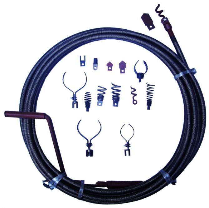 Il convient de garder à l'esprit que le câble pour les systèmes de chauffage et d'alimentation en eau ne doit pas être utilisé pour les systèmes d'égouts ; il ne doit pas être trop «échevelé» - il se peut qu'il ne rentre tout simplement pas dans le pipeline. Il est préférable d'utiliser un câble prêt à l'emploi avec une buse à anneau métallique à l'extrémité. N'utilisez pas de câble pour nettoyer le doseur (compteur).