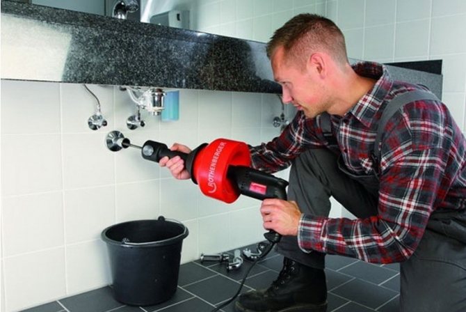 Électrique Est un outil de plomberie professionnel. Un tel câble est utilisé là où un autre équipement est en panne ou il n'est pas pratique de l'utiliser. Ils ont une poignée comme un pistolet, une perceuse, un câble enroulé sur un tambour et un ensemble de pointes. Il n'y a pas besoin de torsion, la rotation est effectuée automatiquement.