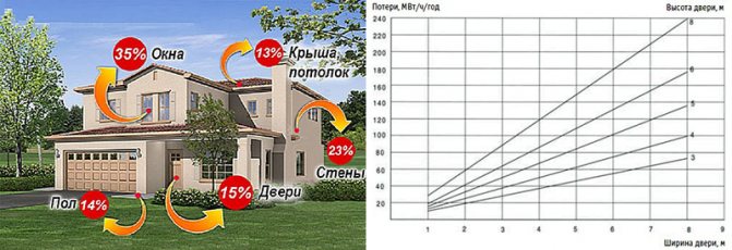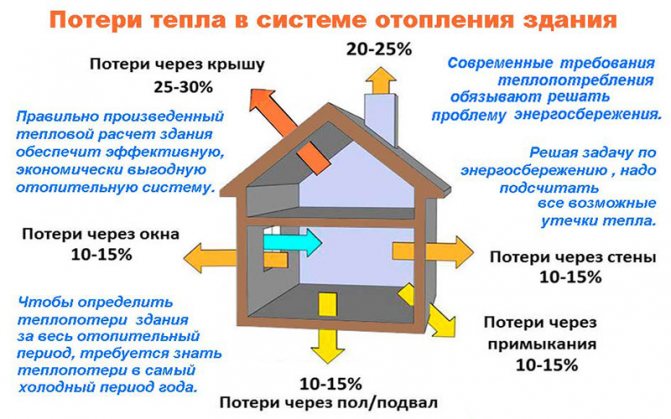 - Détermination de la perte de chaleur à travers les clôtures extérieures et du coût du chauffage de l'air de ventilation conformément au SNiP.