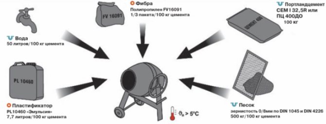 Ensuite, le ciment et les composants restants sont coulés.Il est recommandé d'ajouter le plastifiant avec de l'eau, tout en obtenant un bon mélange.