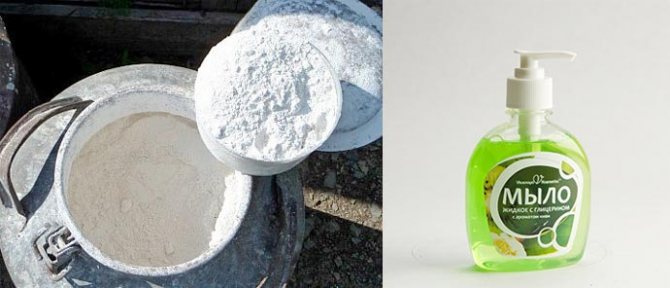 - solution de savon liquide, il faut diluer avec de l'eau à raison de 250 cm3 pour 50 kg de mélange de ciment ;