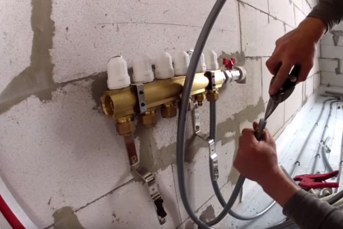 Le préréglage des capteurs de chauffage au sol est nécessaire et important. Même si le système a des thermostats, des contrôleurs et d'autres automatismes. Si vous confiez le réglage à l'automatisation, après un certain temps, tous les flux seront aussi ouverts que possible. Donc, avant de démarrer le système, nous installons le collecteur. Ajuster le débit sur une installation froide sans allumer la chaudière. Le chauffage est démarré après avoir réglé les coûts pour les boucles - pour vérifier la température.