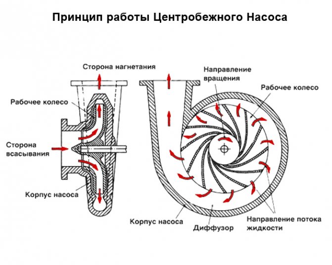 Certains utilisateurs lors de l'installation ne peuvent pas déterminer la direction correcte des buses. Le fabricant a pris en compte cette caractéristique.Par conséquent, sur le corps de l'équipement sous pression, vous pouvez voir une flèche indiquant dans quelle direction le rotor tourne et, en conséquence, le liquide de refroidissement.