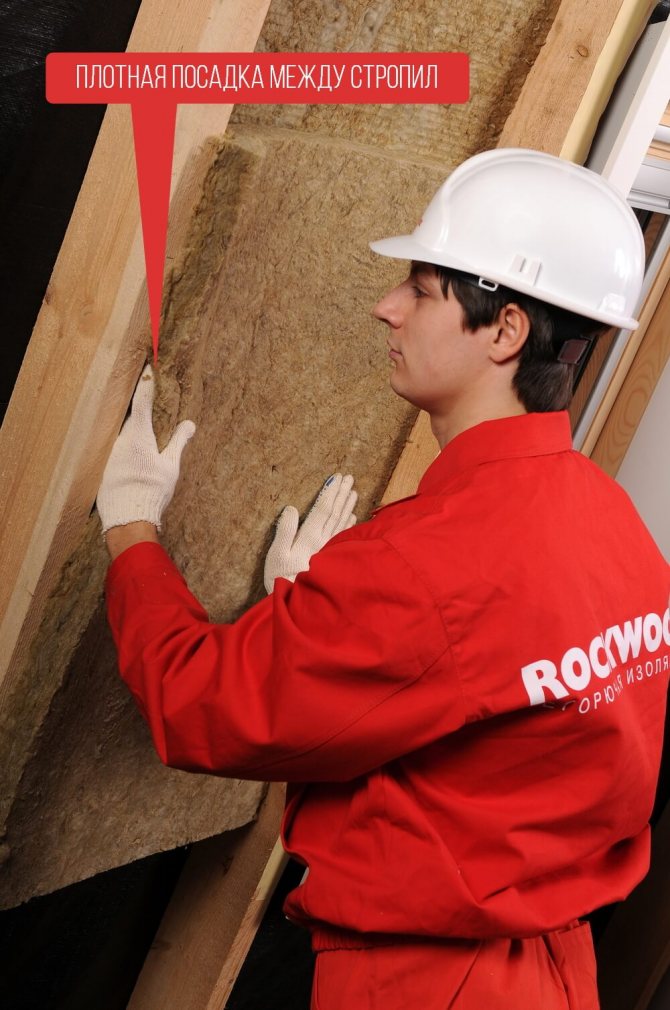 Lors du processus d'installation de dalles minérales, les experts conseillent de suivre les recommandations du fabricant afin que la durée de vie du matériau soit aussi longue que possible.L'isolation doit être posée en au moins deux couches, chevauchant les joints. Grâce aux bords élastiques, le placement des dalles est grandement simplifié, elles n'ont pas besoin d'être coupées ou ajustées à la taille. Déjà après l'installation entre plusieurs chevrons ou autres éléments de guidage, le matériau se redresse et remplit l'espace vide. Il n'est pas difficile d'identifier le côté marqué car il est marqué d'une bande rouge.