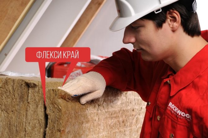 Le bord Rockwool, qui peut changer de densité, est situé sur le côté long de la dalle et est marqué pour faciliter le travail. Lors de l'installation, une telle isolation offre une plus grande densité d'adhérence à la structure par rapport aux autres matériaux et ne forme pas de fissures, en raison desquelles il n'y a pas de courants d'air dans la pièce, et la chaleur ne s'échappe pas à l'extérieur.