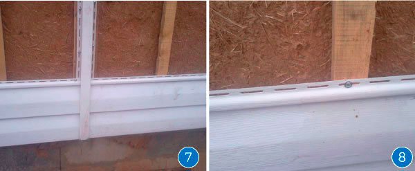 Ensuite, prenez le niveau et utilisez-le pour définir verticalement les profils H. Il est important de laisser un espace ici aux avant-toits et au socle. Il doit être compris entre 5 et 6 millimètres. Ceci est fait pour que la flexion des bandes ne se produise pas lors de l'expansion.