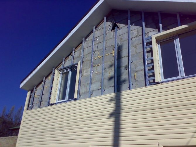 Conseils! Le bois sera moins cher, mais il y a un risque que, en raison des changements d'humidité, une telle structure se déforme, rendant tout le revêtement de la maison inutilisable. Par conséquent, il est préférable d'utiliser un profilé métallique, ce qui vous permettra de créer une structure fiable, en tenant compte du poids des panneaux de revêtement et du matériau isolant.