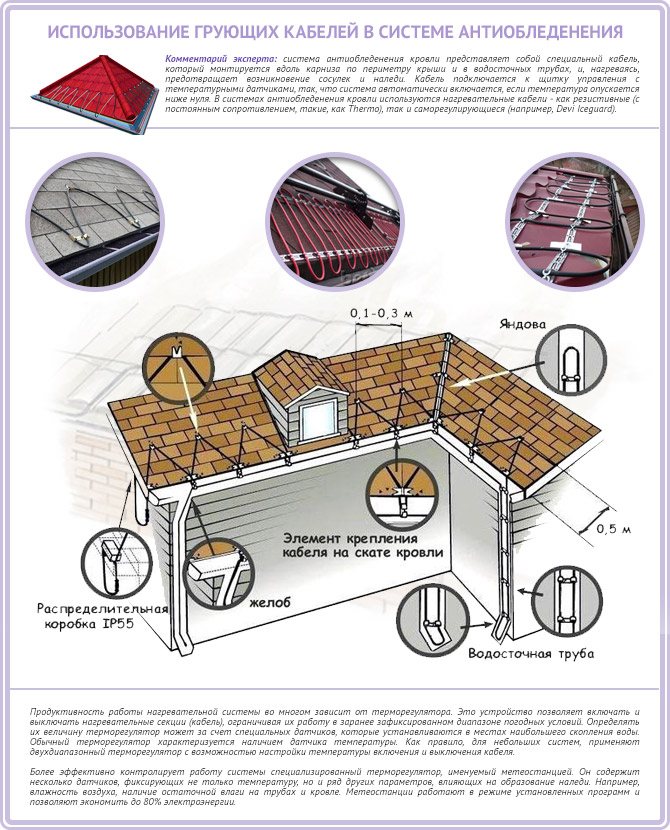 Un système de chauffage du toit et des drains aidera à prévenir la formation de glaçons. Avec son aide, les tâches suivantes sont résolues: