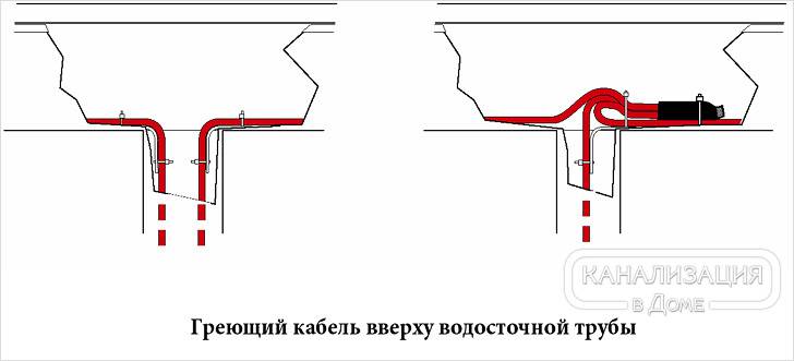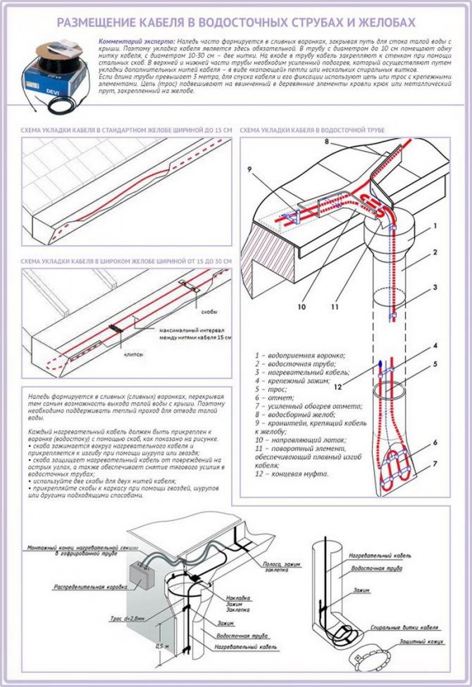 Le plus efficace est le schéma dans lequel le câble est utilisé pour chauffer simultanément les vallées, le surplomb du toit et le système de drainage