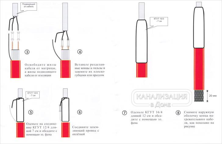 - Pour chauffer les tuyaux de drainage, 2 morceaux de la puissance requise sont posés en même temps. L'installation est effectuée par le haut et par le bas.