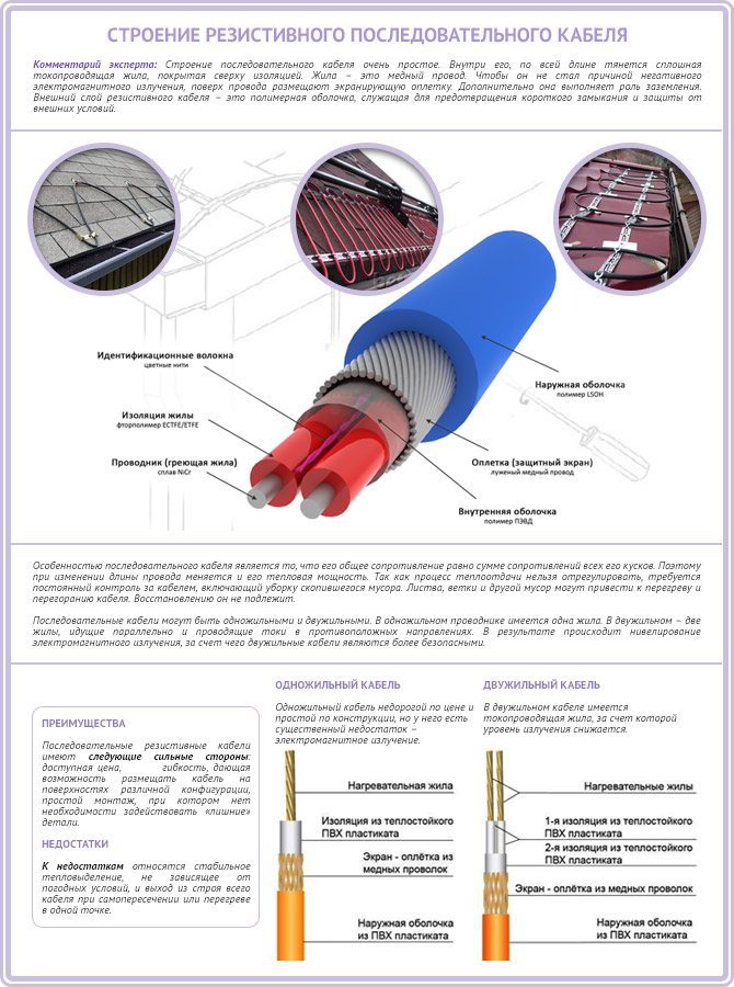 Les principaux avantages d'un câble résistif sont la faible, la facilité d'installation et de fonctionnement, un chauffage rapide.