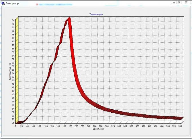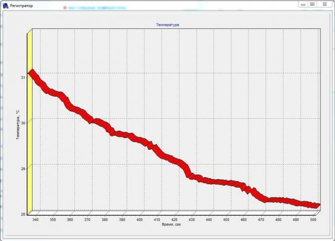 Le programme dispose d'un enregistreur qui vous permet d'observer la dynamique des changements de température. L'enregistreur s'allume automatiquement au démarrage du programme. Il enregistre les valeurs de température par incréments de 1 seconde. La durée maximale d'enregistrement est de 30 000 secondes ou 8,3 heures.