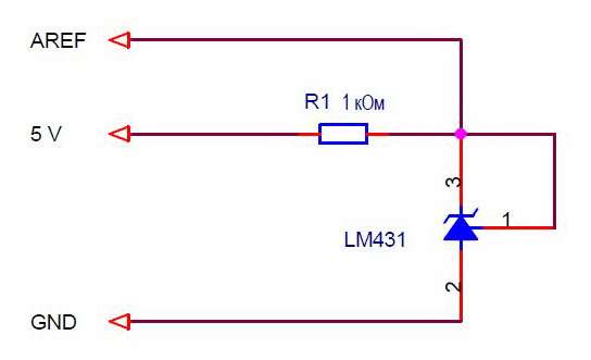 En conséquence, la résolution diminuera de 2 fois et la stabilité diminuera d'un ordre de grandeur. Tout de même, pour améliorer la précision, il est nécessaire de mesurer la tension réelle du LM431 avec un voltmètre et de la corriger dans le programme.