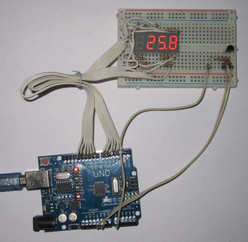 Le circuit du thermomètre basé sur la carte Arduino UNO R3 ressemble à ceci.