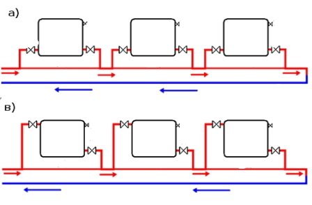 Quel que soit le câblage utilisé, lors de l'installation du système de chauffage, des sections de dérivation sont toujours réalisées. Dans les schémas monotubes, ils sont effectués à l'aide de tuyaux de diamètre inférieur à celui du tuyau d'alimentation. De plus, dans de telles zones, il est possible d'installer des équipements d'étranglement - des vannes thermostatiques.