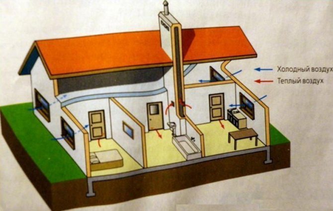 Le schéma le plus simple d'un système de ventilation naturelle est présenté dans des bâtiments typiques conventionnels. En eux, les ouvertures des portes et des fenêtres assurent la circulation de l'air. L'air est évacué par des conduits de ventilation et des hottes situés, en règle générale, dans la cuisine et dans les salles de bains. La ventilation naturelle n'a pas de contrôle automatique, elle est fiable, durable et facile à installer. Le principal inconvénient de ces systèmes est la dépendance à des facteurs externes sur lesquels une personne ne peut pas influencer. Il est impossible de réglementer un tel système.