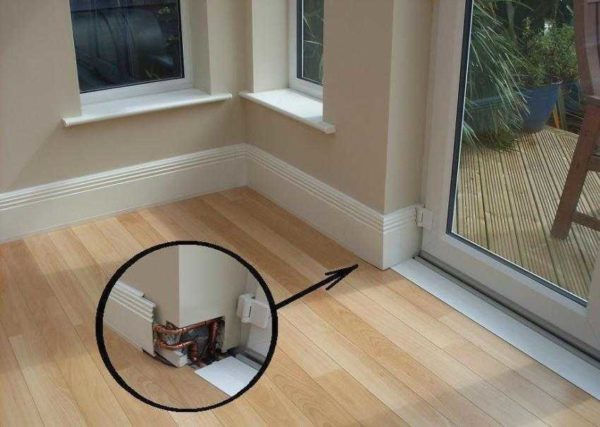 Il existe deux types de système, lorsque l'espace de la pièce est chauffé à l'aide de la structure de la plinthe: le chauffage par plinthes électriques et le chauffage de l'eau. Nous nous attarderons plus en détail sur la première option.