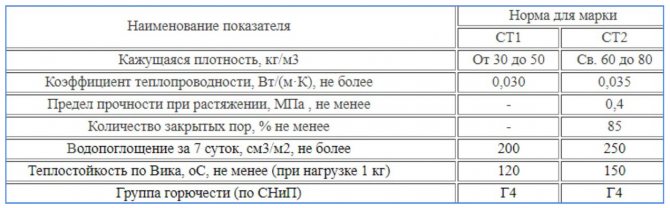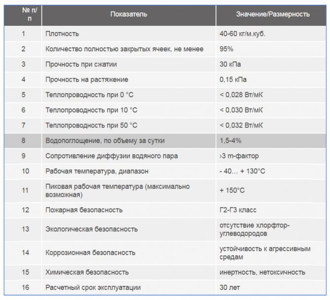 - conductivité thermique à 25 degrés: pas plus de 0,038-0,042 W / m * K;