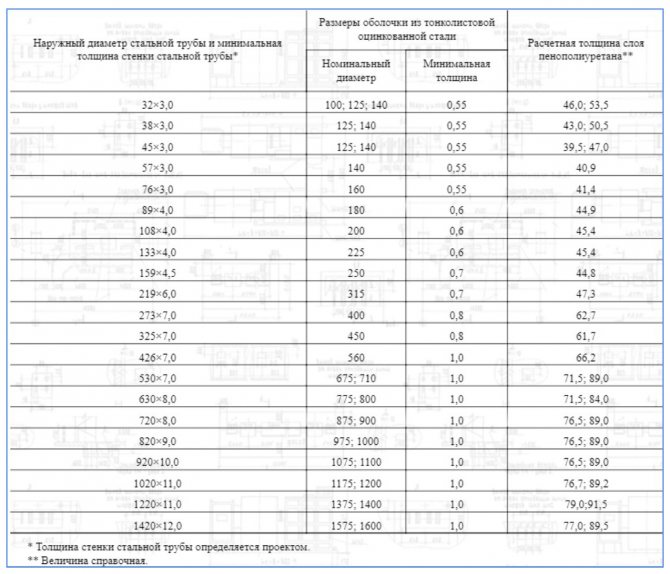 Les coques pour tuyaux sont constituées de mousses de polyuréthane de remplissage rigides sans CFC. Leurs propriétés physiques et chimiques doivent être cohérentes avec GOST 30732 de 2001 et les données du tableau.