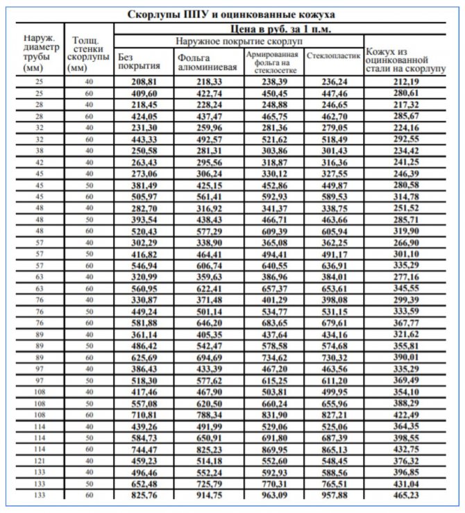 Les coques PPU pour tuyaux d'un diamètre de 108 et 133 mm sont utilisées pour l'isolation thermique des tuyaux d'égout. Produits avec une section de 1,5; 2,0; 3.2; 4,5 et 5,7 cm servent généralement d'éléments d'isolation pour les canaux de chauffage interne et d'alimentation en eau. La coque en PPU pour les tuyaux des unités d'ascenseur et des points de chauffage a généralement un diamètre de 8,9; 10,8; 13,3; 15,9 et 21,9 cm Les produits 27,3 sont utilisés pour les pipelines principaux et technologiques; 32,6 et 102,0 cm.