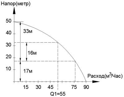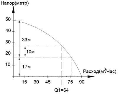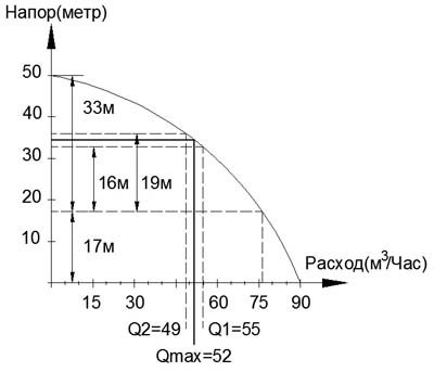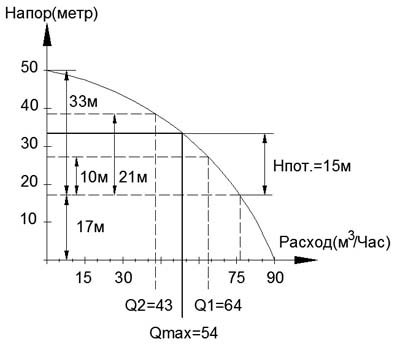 Pour le résoudre, vous devez connaître le programme de la pompe : La dépendance du débit sur la tête.