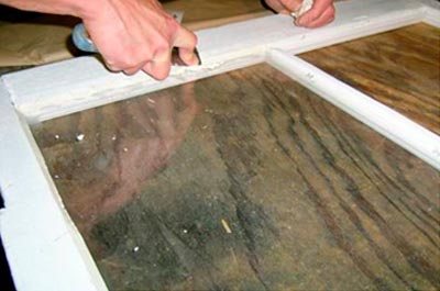 Par conséquent, avant l'isolation, il est nécessaire d'effectuer une petite réparation des cadres eux-mêmes. Pour ce faire, inspectez les cadres et les points de fixation du verre. Si des fissures ou du verre ne sont pas bien ajustés au cadre, ces endroits doivent être enduits d'un mastic spécial. L'excès de mastic est enlevé avec un chiffon sec.