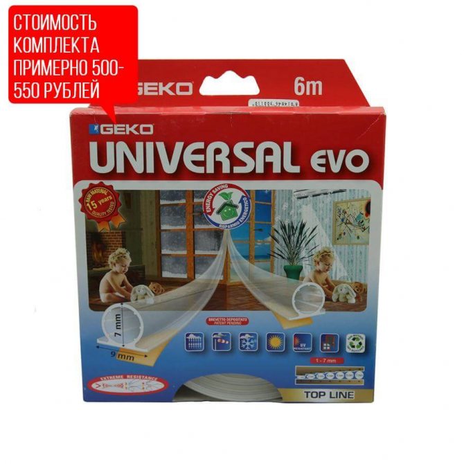 Le joint a une forme tubulaire et creuse, grâce à laquelle il retient très bien la chaleur. Le coût moyen d'un ensemble pour une fenêtre est de 500 à 550 roubles. Cependant, si vos fentes ne sont pas si grandes et que vous pouvez acheter une bande d'un diamètre plus petit, ce sera moins cher. Le prix des bandes de ce fabricant commence à une moyenne de 220 roubles.