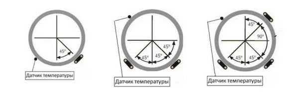 Noter! Séparément, il convient de parler de l'installation du capteur de température.Pour un chauffage ininterrompu de la ligne et pour éviter la surchauffe du câble, le capteur de température doit être situé au point le plus froid de la ligne, à la plus grande distance de la ligne elle-même.